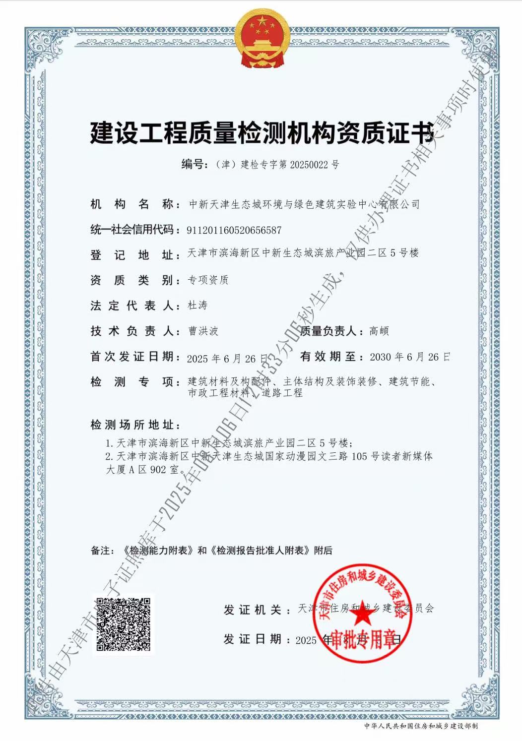 中新天津生態(tài)城環(huán)境與綠色建筑實(shí)驗(yàn)中心有限公司